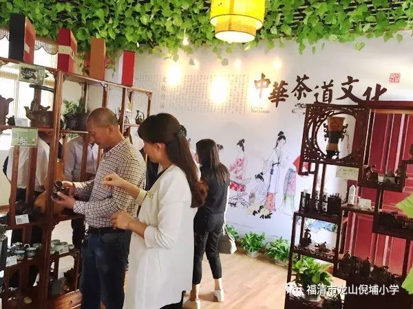 当天上午,《八闽大地》摄制组及村委众领导一行来到倪埔小学,受到了倪埔小学负责人林红主任的热情接待。摄制组首先拍摄了学校的校园环境,接着在林红主任的带领下,摄制组和村委领导一行先后参观了学校的“半亩茶园”和位于学校教学楼三楼的茶马古道文化走廊,并进入到“茶文化室”、“茶博室”、“茶艺表演室”三间展室进行拍摄。期间林红主任边带领来宾们参观边做讲解介绍,让来宾们对倪埔小学的办学理念和校园文化有了更进一步的了解。值得一提的是倪埔小学学生们精湛的茶艺表演赢得了在场所有来宾的称赞。大家一边观看,一边拍照,边走边讨论,纷纷发表自己的看法、想法,深深地被倪埔小学独具匠心的校园茶文化所吸引。倪埔村村主任兼书记倪时平主任表示,倪埔小学紧紧围绕“茶文化”这个主题,充分发挥师生主动性和创造力,在校园内构建起了独具茶道和学校特色的文化氛围,给予学生以传统茶文化的熏陶和教育,美化了校园,净化了心灵,为倪埔村创建“美丽乡村”做出了不小的贡献。在参观行程结束后,摄制组还采访了林红主任,林红主任谦虚地表示,学校的文化建设成果离不开龙山中心小学领导王瑞贤校长和村委等上级领导的大力支持,同时也感谢倪埔小学全体教职工的辛劳付出。