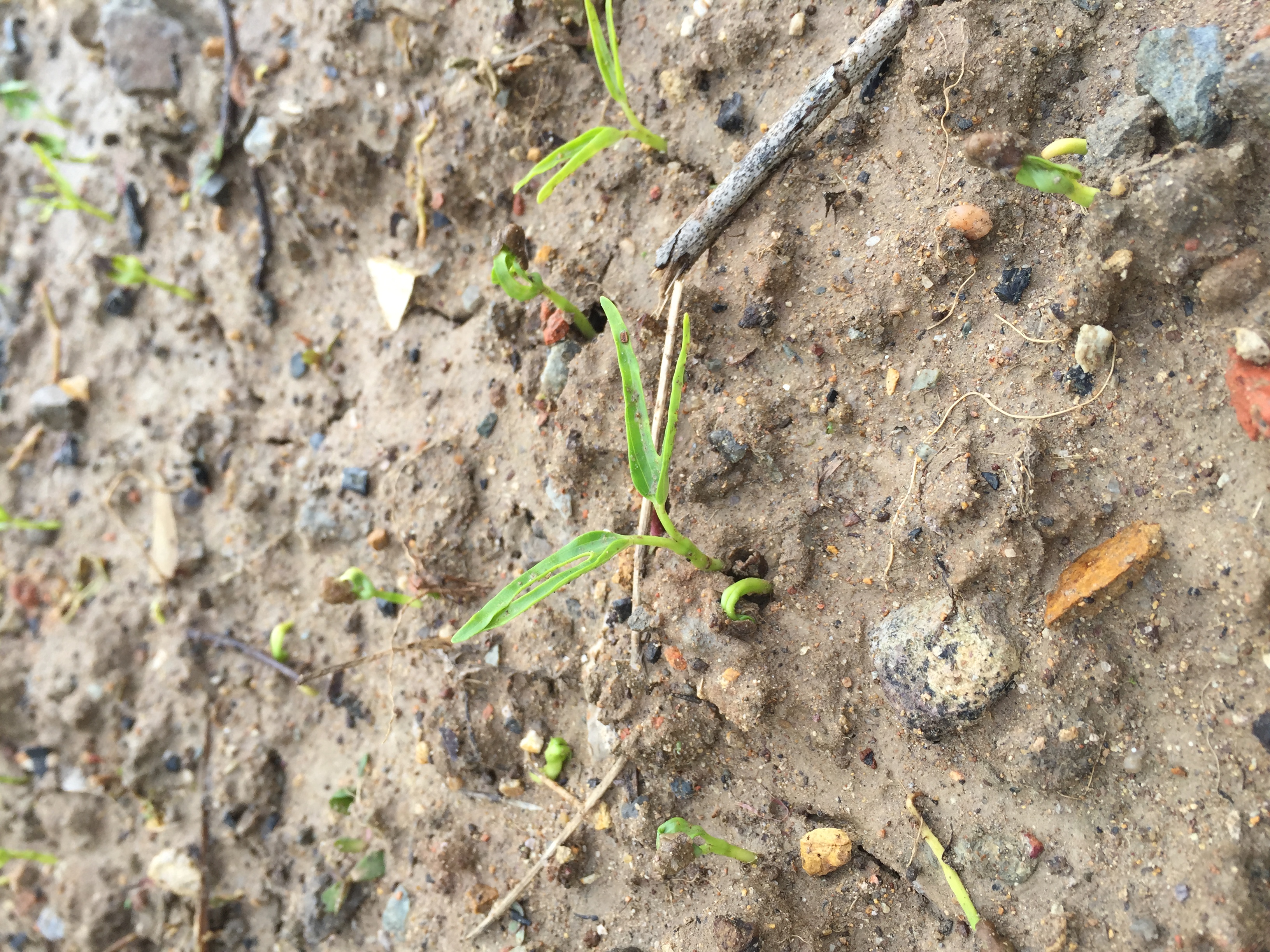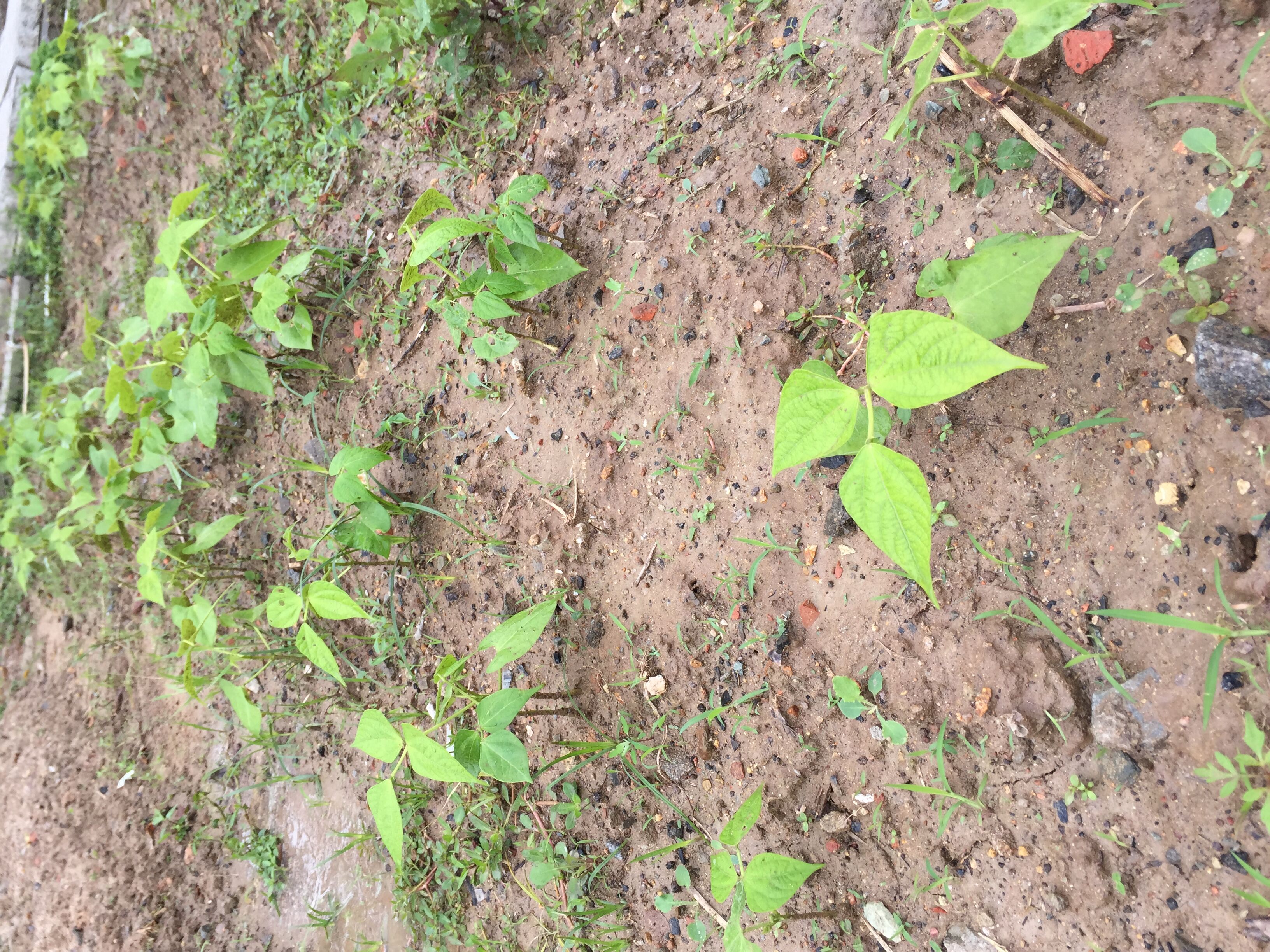 快看,我们地种的空心菜长出来了,真高兴!