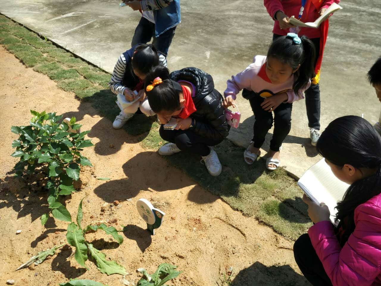 孩子们观看中草药种植视频